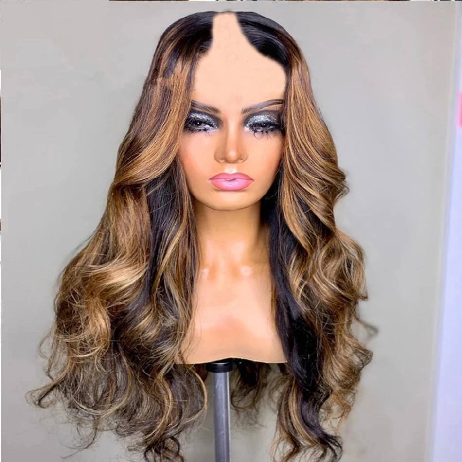 Бесклеевая подсветка, парик блонд U-образной формы, 100% человеческие волосы, 250 плотность, перуанские волнистые волосы Remy, 2x4, средние U-образные парики