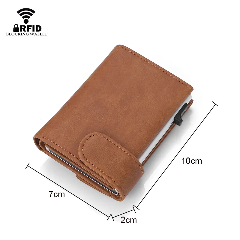 Винтажный Мужской кожаный бумажник RFID, металлические умные кошельки, безопасная застежка, карман для монет, кошелек для денег, мужской бумажник