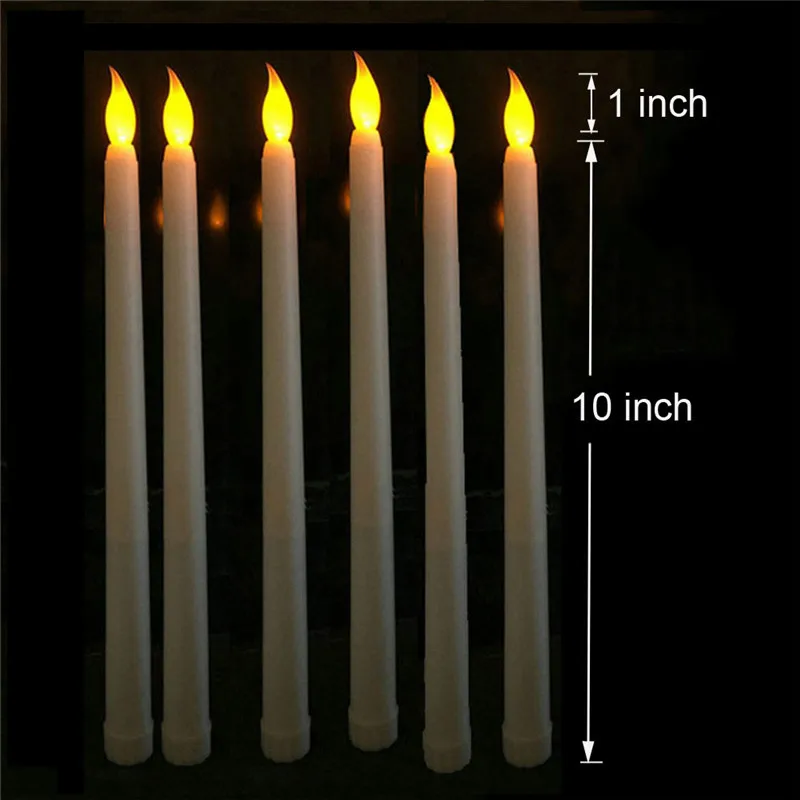 Беспламенные конусные свечи с пультом дистанционного управления, упаковка из 6 беспламенных 10-дюймосветодиодный светодиодных мерцающих свечей на батарейках для свадьбы, домашнего декора