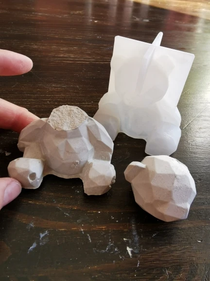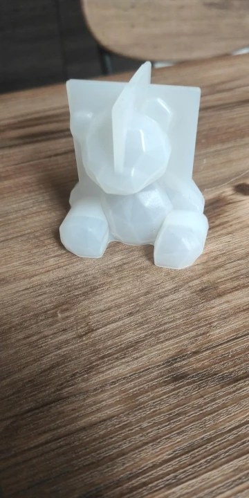 Форма очень неудачная. Силикон жёсткий, совершенно не растягивается. Никак не получатся вынуть целую фигурку, голова всегда отламывается и вынуть её оттуда очень трудно. Попыталась разрезать форму, чтобы удобнее было вынимать, но тоже не помогло, силикон тонкий, рыхлый, форму не держит, всё вытекает.