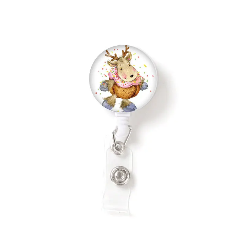 Рождественский бейдж с Санта-Клаусом и оленем, выдвижной шнурок, зажим для рабочей карты, пояс с пряжкой для офисных работников, идентификационная бирка