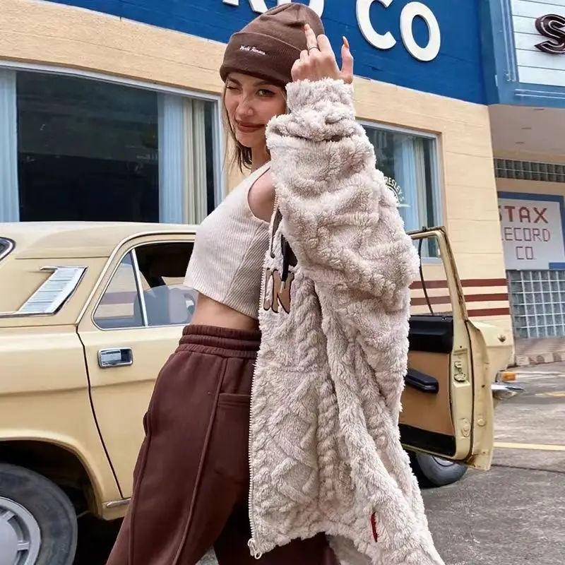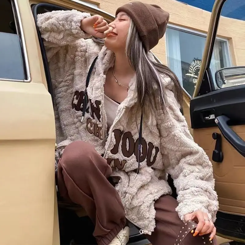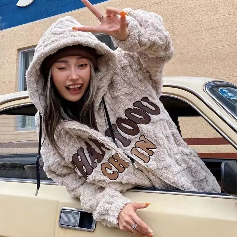 Толстовка с капюшоном на молнии в стиле ретро, бархатная куртка из овечьей шерсти, новый кардиган на осень и зиму 2021, куртка с капюшоном, бархатная толстая, сетчатая, красная