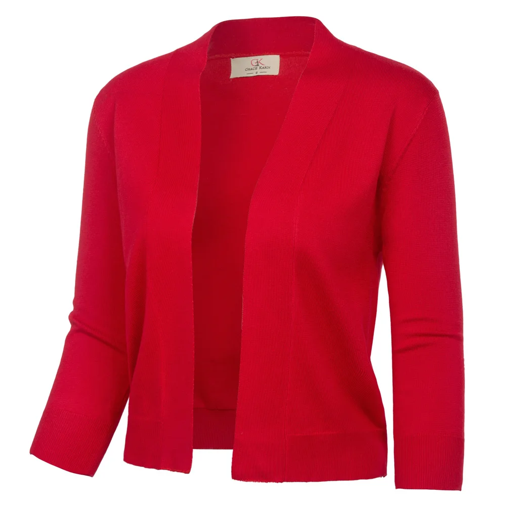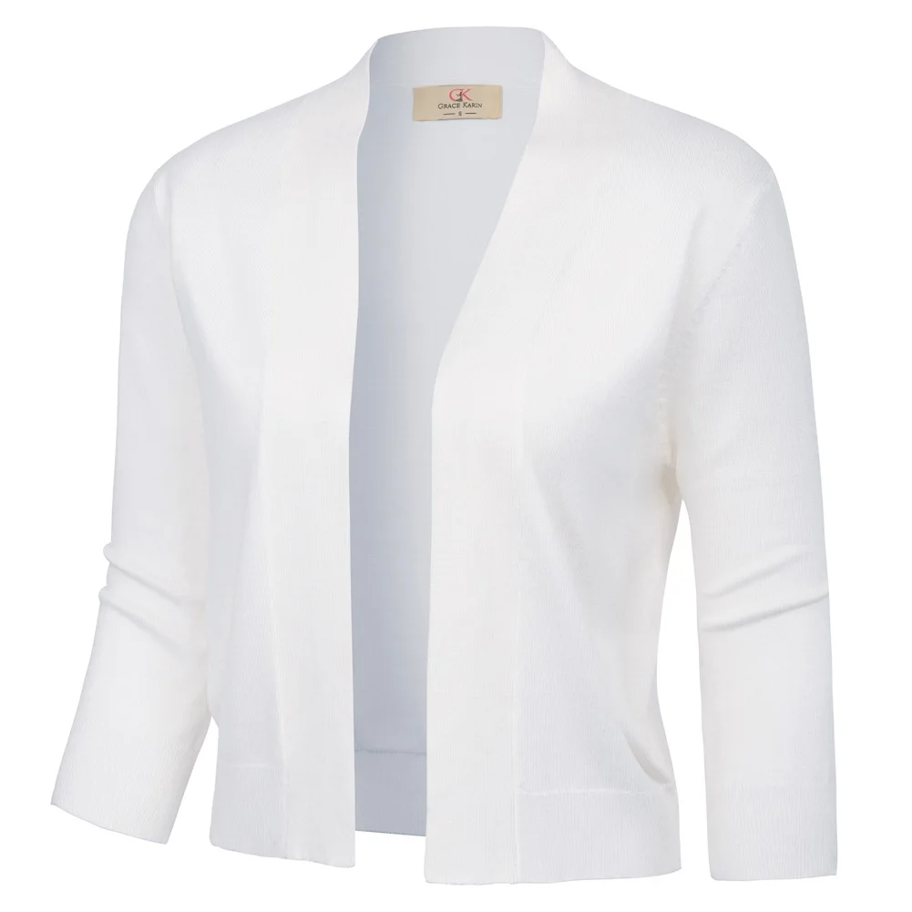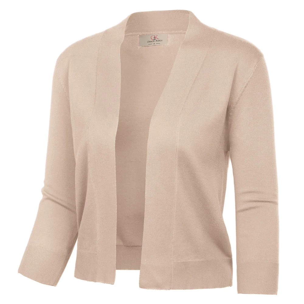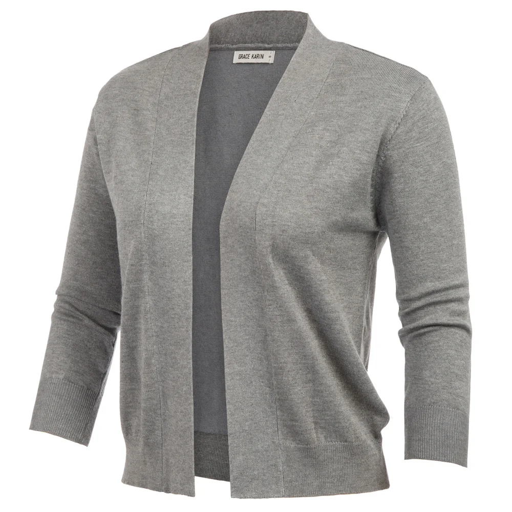Женский Короткий трикотажный кардиган Grace Karin, мягкая Весенняя короткая куртка с рукавом 34 и разрезом спереди, болеро