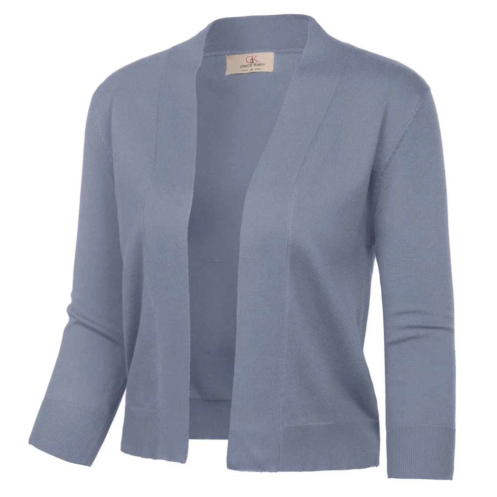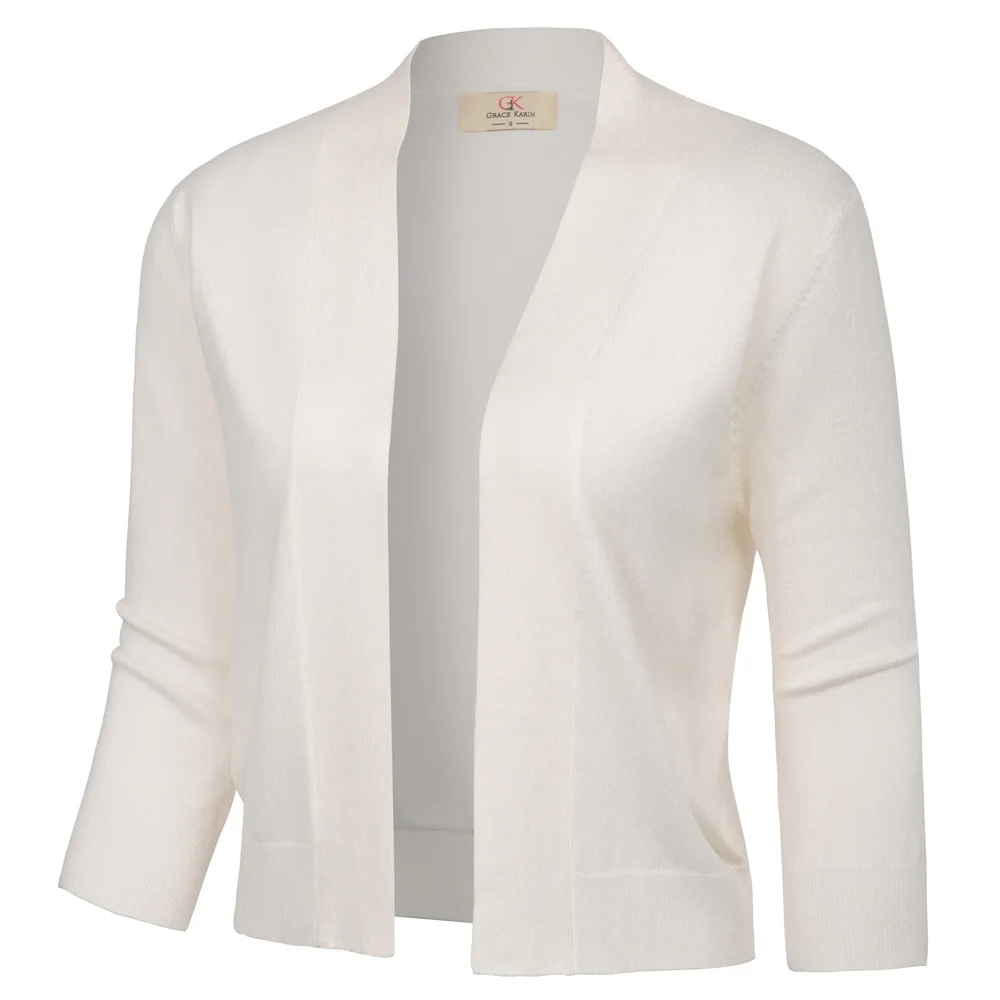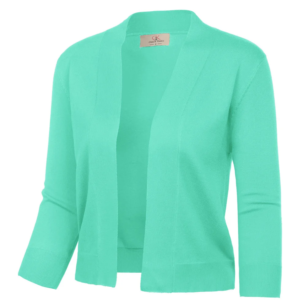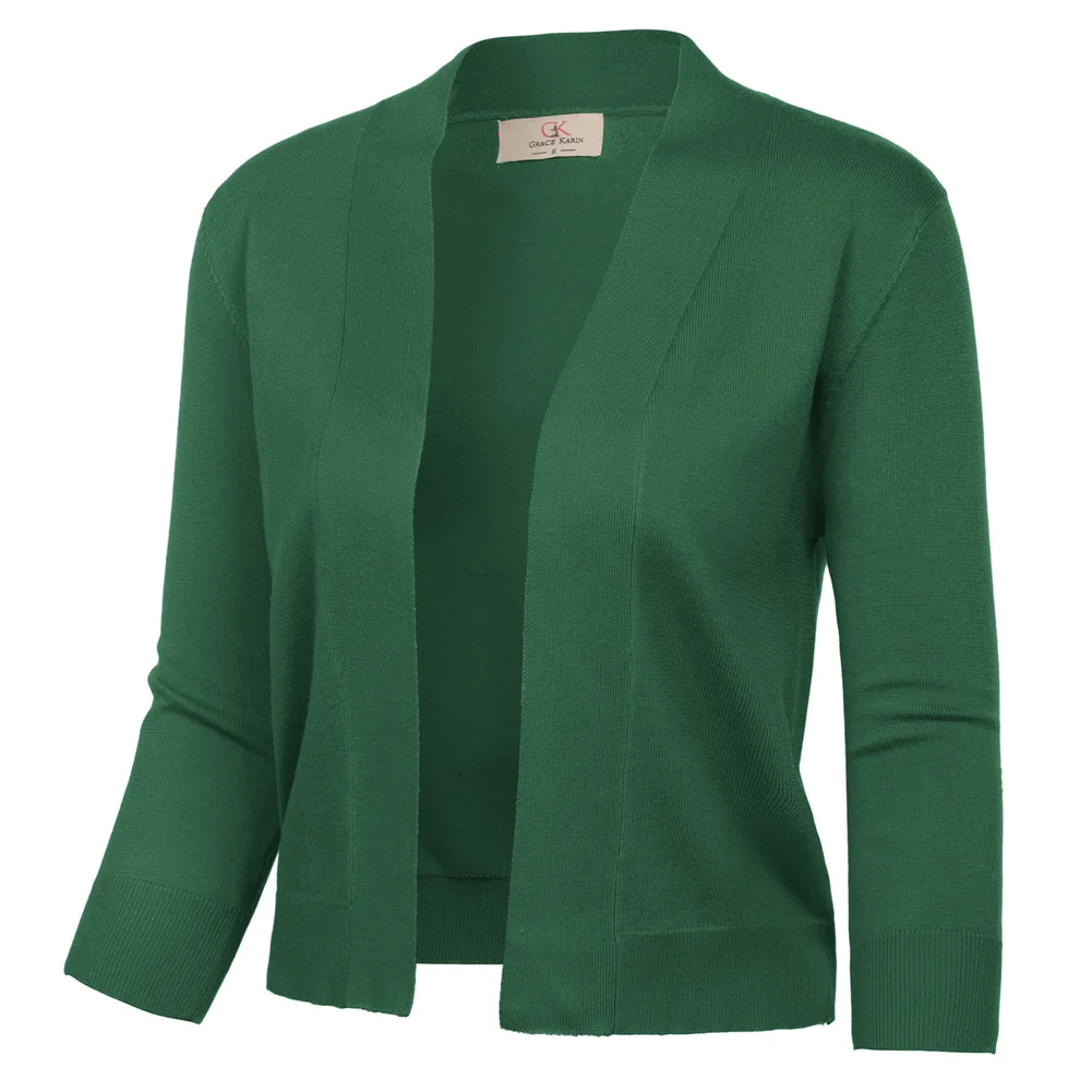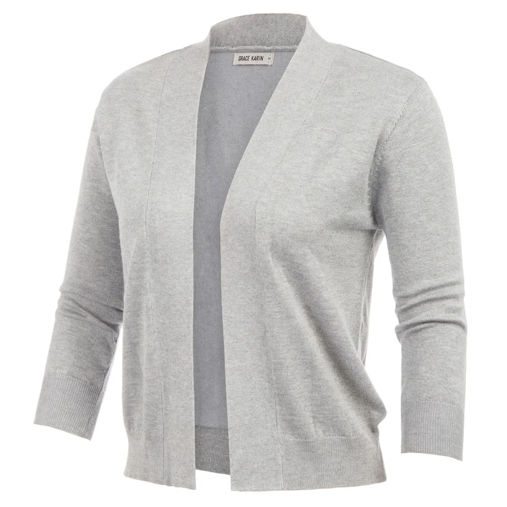 Женский Короткий трикотажный кардиган Grace Karin, мягкая Весенняя короткая куртка с рукавом 34 и разрезом спереди, болеро