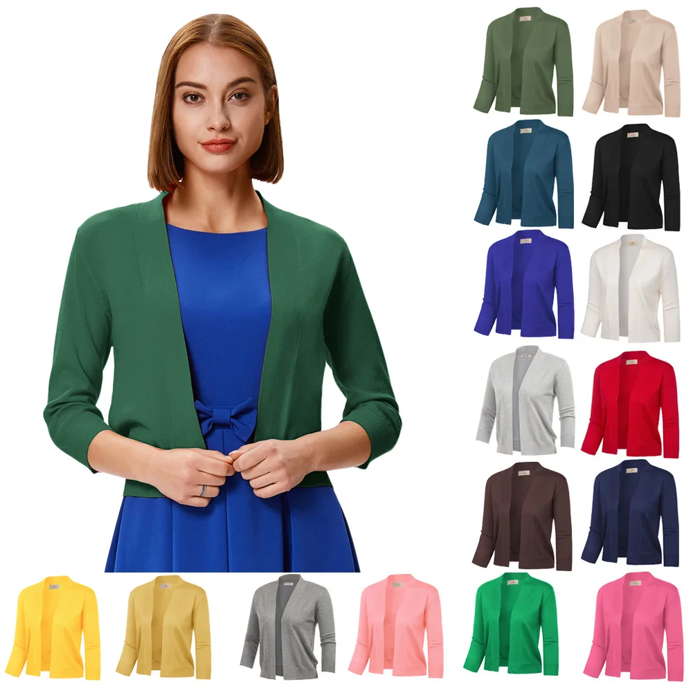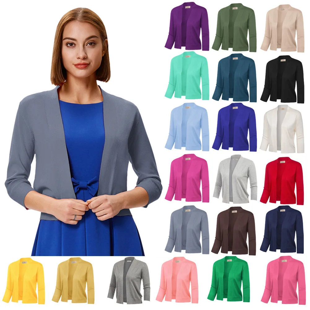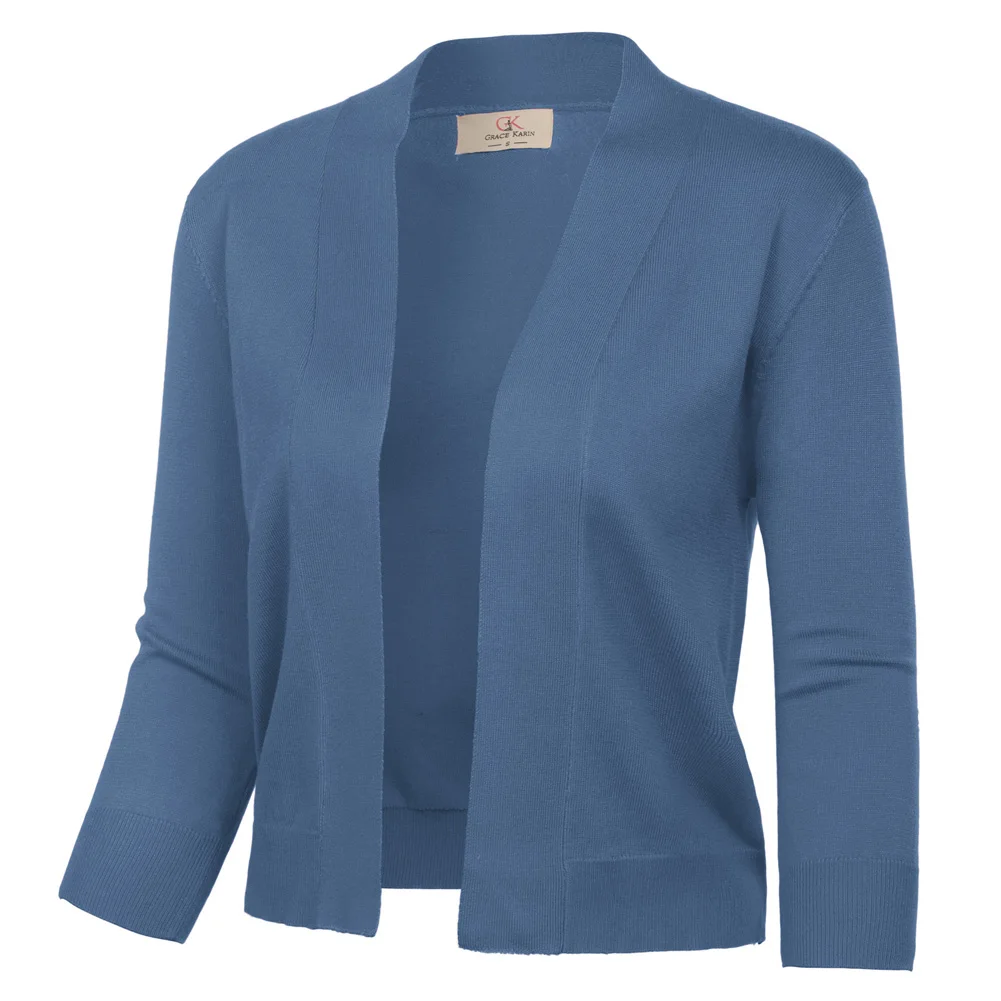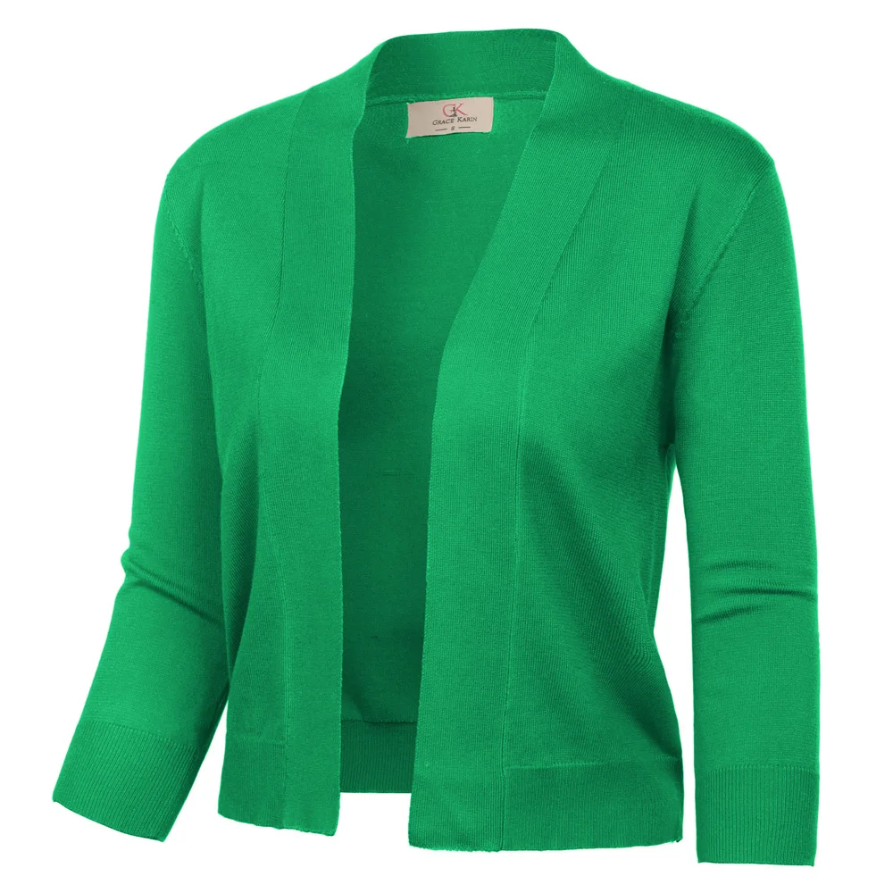 Женский Короткий трикотажный кардиган Grace Karin, мягкая Весенняя короткая куртка с рукавом 34 и разрезом спереди, болеро