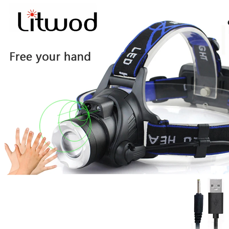 Светодиодный налобный фонарь T6L2V6, 3 режима, регулируемый, водонепроницаемый суперъяркий, туристический, фонарь с зарядкой от USB, освещение для рыбалки