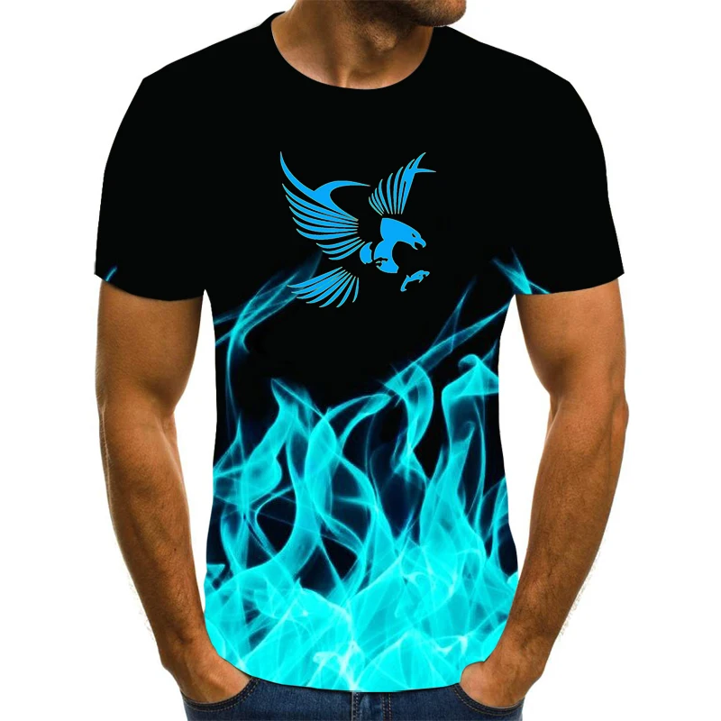 Новинка 2020, футболка с рисунком пламени, Мужская футболка с 3D пр...
