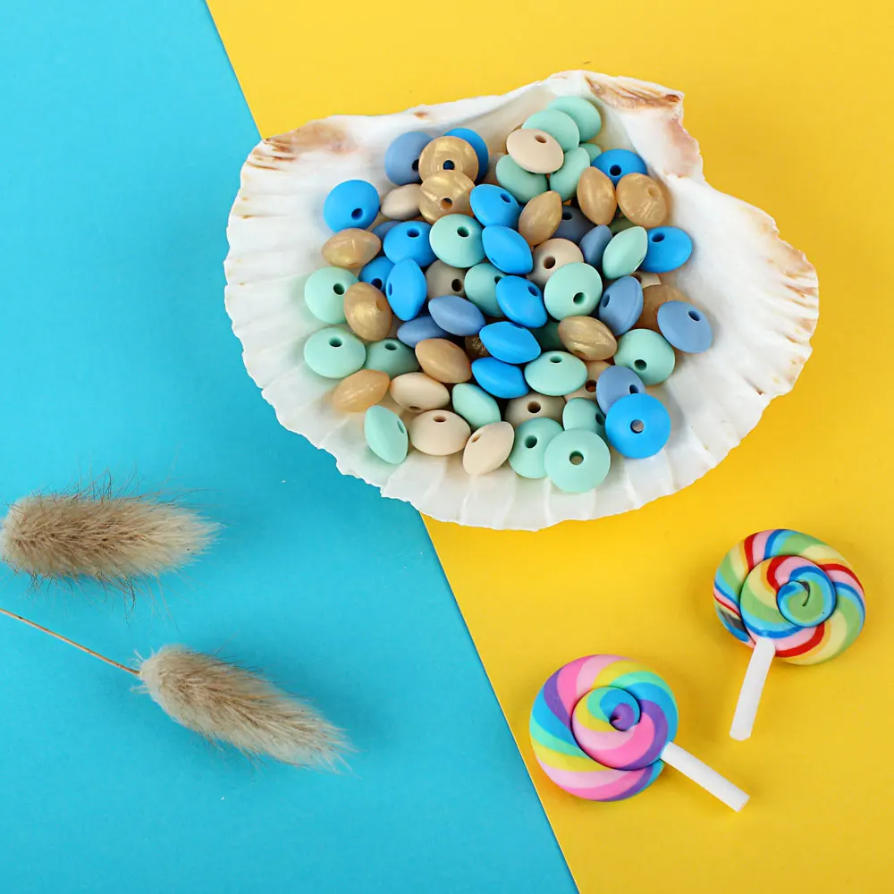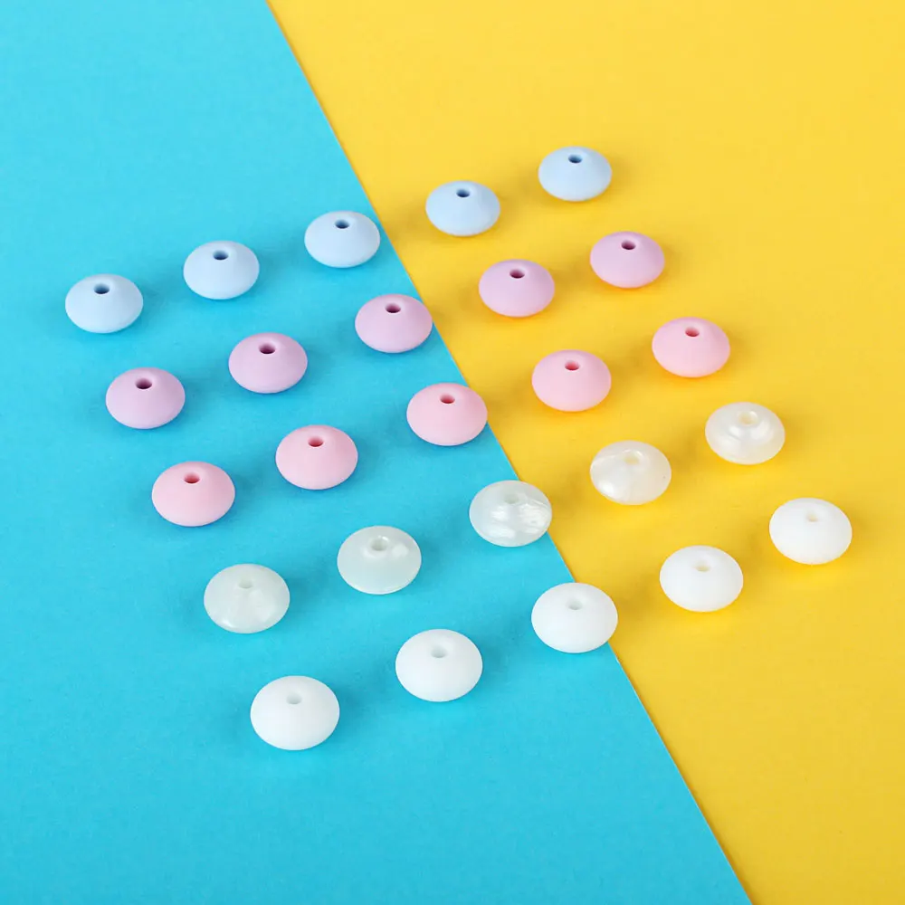 50 шт. 12 мм Детские Прорезыватели из чечевицы силиконовые пищевого класса DIY Новорожденные грызуны соски цепи игрушки, не содержащие БИСФЕНОЛ Baby Abacus Bead Pearl
