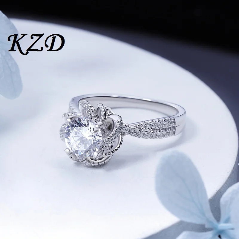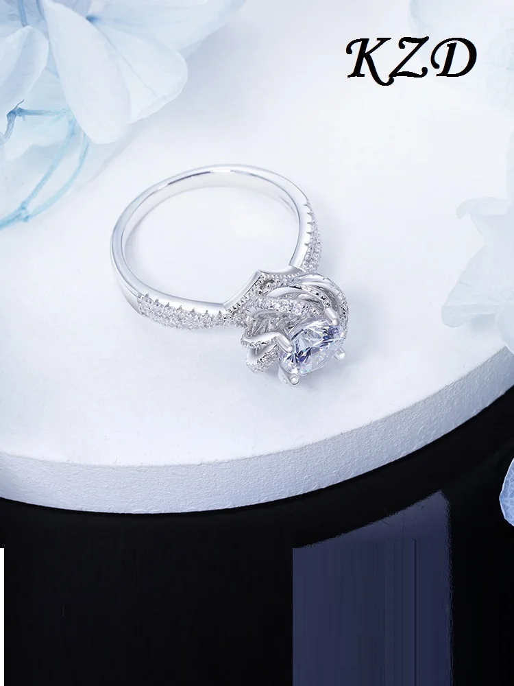 Роскошное женское кольцо с инкрустацией из муассанита на шести зубцах