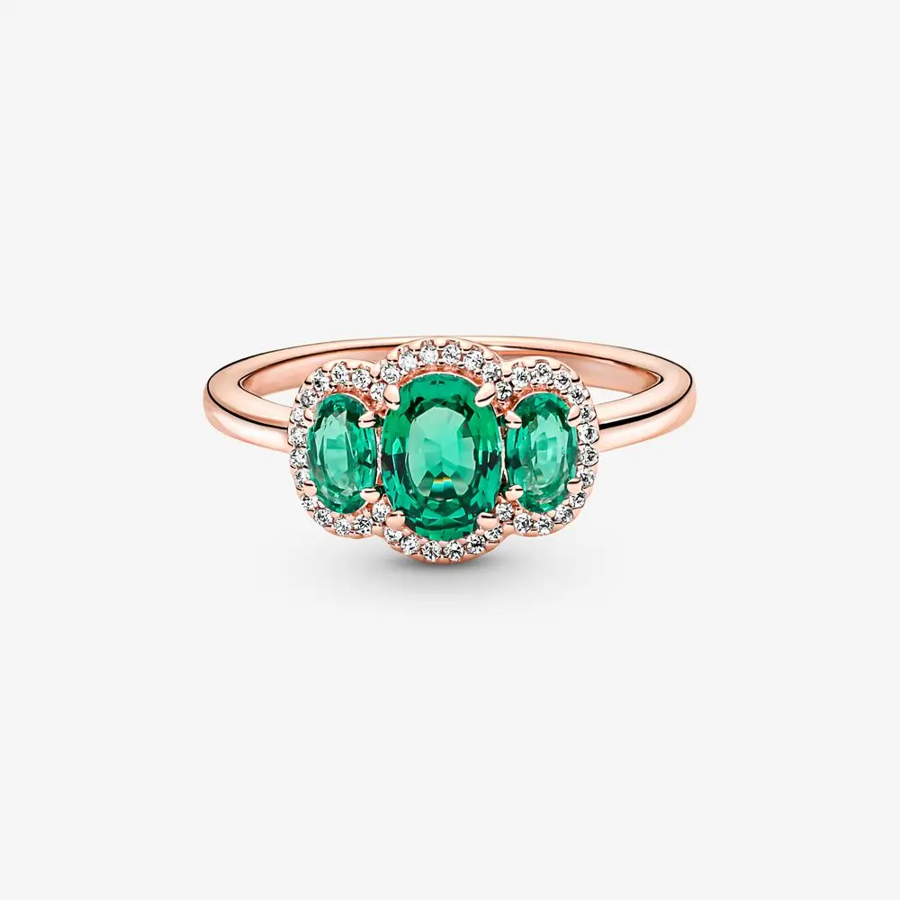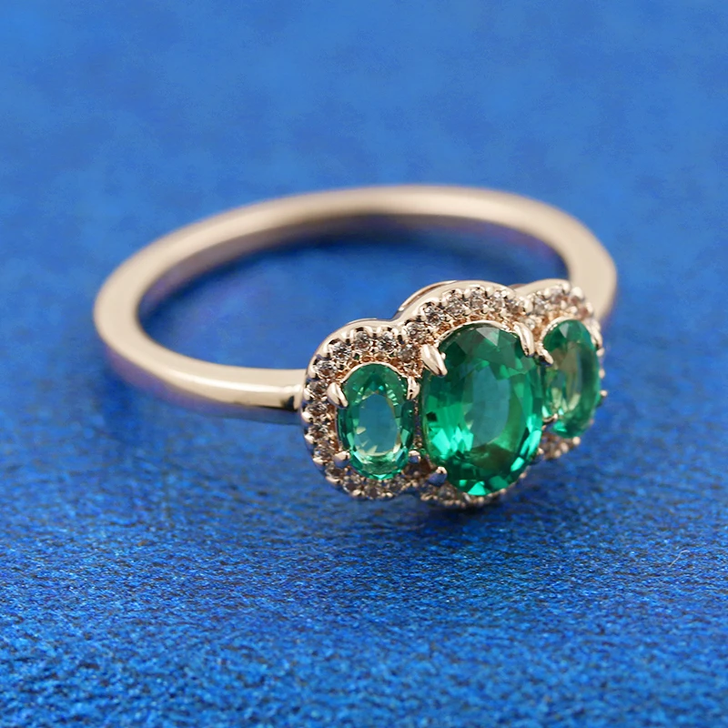 Поднимите любой вид с тремя каменными винтажными кольцами. Изготовлено вручную из уникального металлического сплава с покрытием из розового золота 14 к. Кольцо с двумя овальными зелеными кристаллами по обе стороны большого овального зеленого центра камня. Прозрачный паве halo оправ трех камней, в то время как тонкая лента и открытые стороны на корзине, держащей камни придают кольцу нежный вид. Носите его отдельно или складывайте с другими стилями, чтобы сделать заявление.