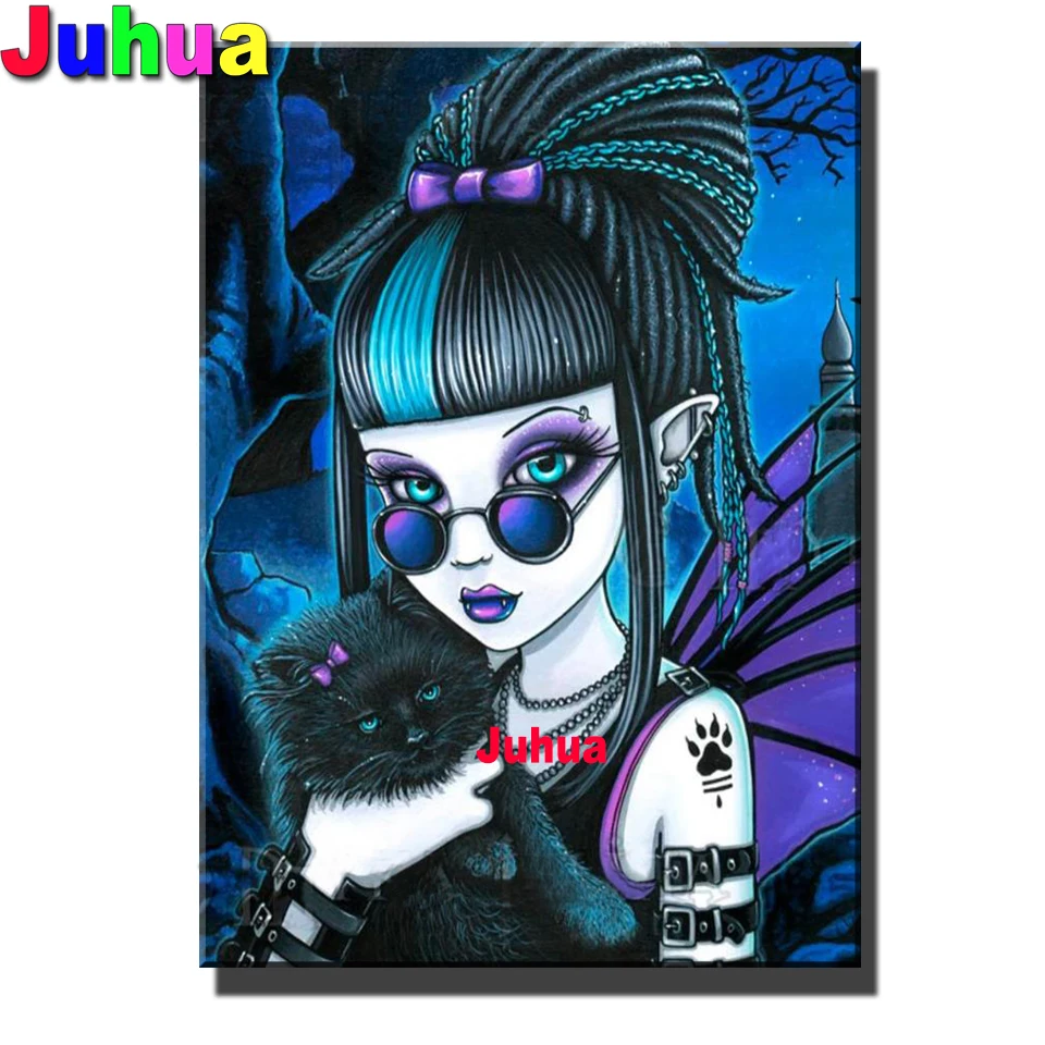 Алмазная живопись сделай сам, Набор для вышивки крестом 5d с полными квадратнымикруглыми стразами Амелия, Готическая девушка-вампир, Набор для вышивки крестиком, Милая Фея