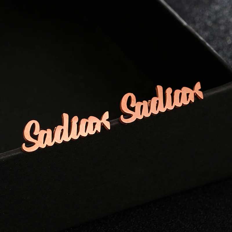 Эксклюзивные серьги-гвоздики с именем на заказ унисекс, женские, мужские персонализированные именные таблички, высококачественные ювелирные изделия из нержавеющей стали 316L