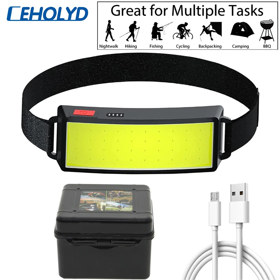 Светодиодный налобный фонарь, портативный COB фонарь со встроенным ...