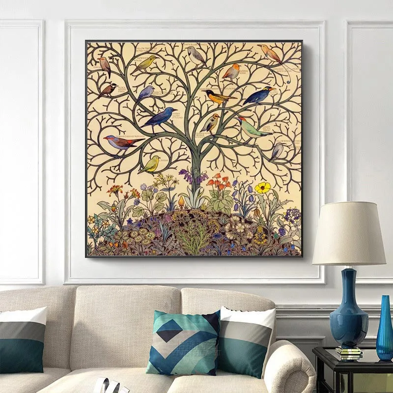 Древо жизни тропические Songbird фотообои ретро экзотические птицы Природный холст живопись Настенная картина домашний декор