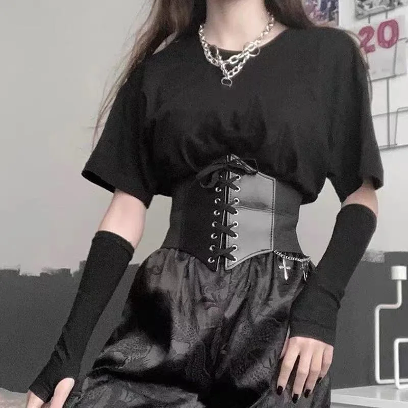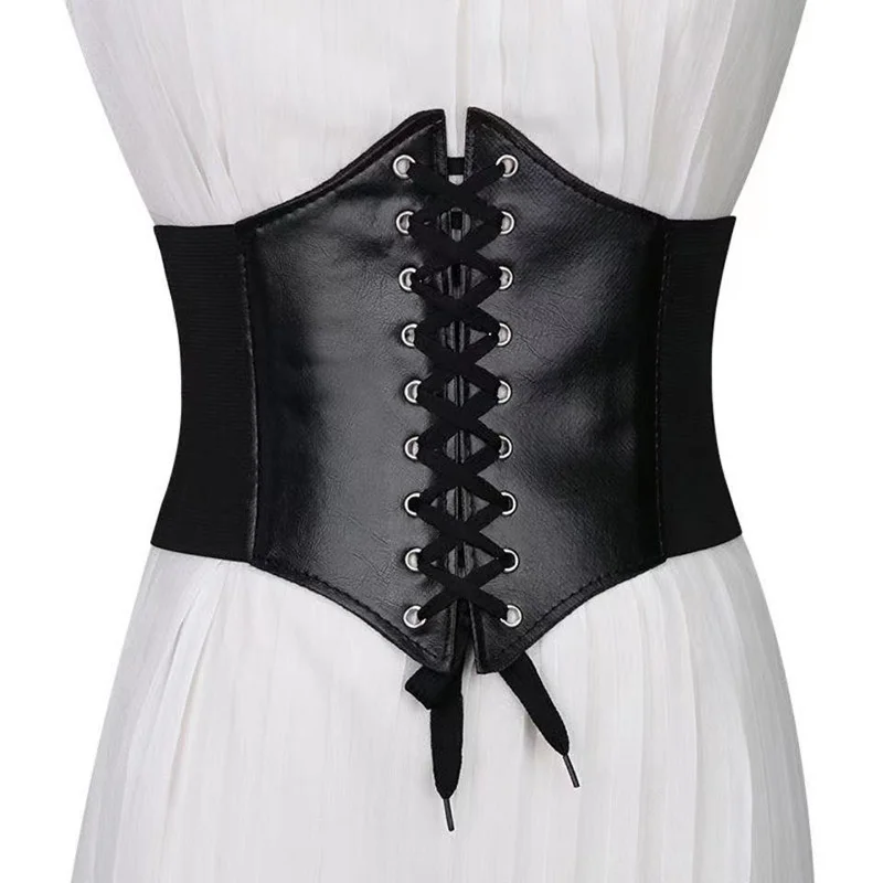 Супер широкий женский корсет в стиле панк ремешок дизайнерская короткая юбка из искусственной кожи Топ 5 цветов ремень с пряжкой пояс