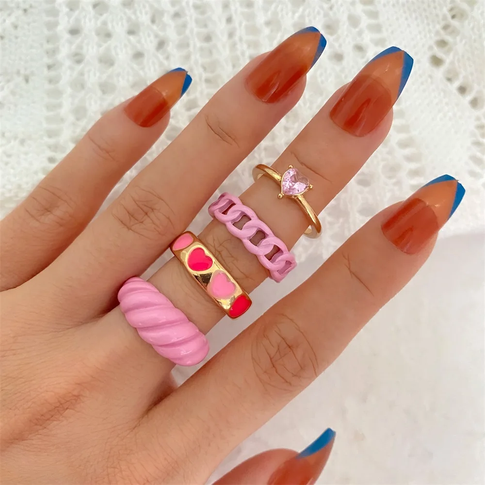 KISSWIFE Набор колец с розовыми кристаллами Y2K в форме сердца для ...