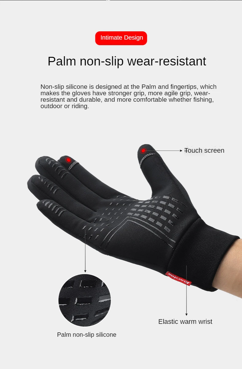 Зимние водонепроницаемые перчатки для мужчин и женщин, ветрозащитные спортивные перчатки для рыбалки с сенсорным экраном для вождения, мотоцикла, лыжного спорта, Нескользящие теплые велосипедные перчатки