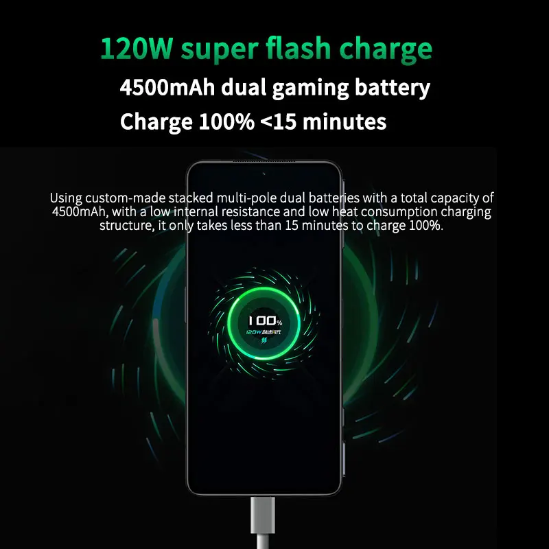 Серия зарядки обеспечивает сверхвысокую скорость 120 Вт, А параллельная разрядка обеспечивает дополнительный срок службы батареи для более длительного использования. Специальный чипсет зарядки в Black Shark 4 Pro умело управляет этими процессами, чтобы максимизировать двойную систему батарей.