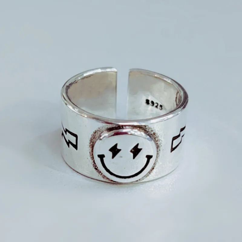 Корейские Модные Винтажные кольца на палец со смайлом и вспышкой в ...