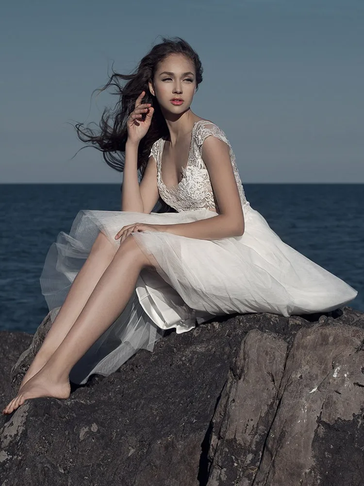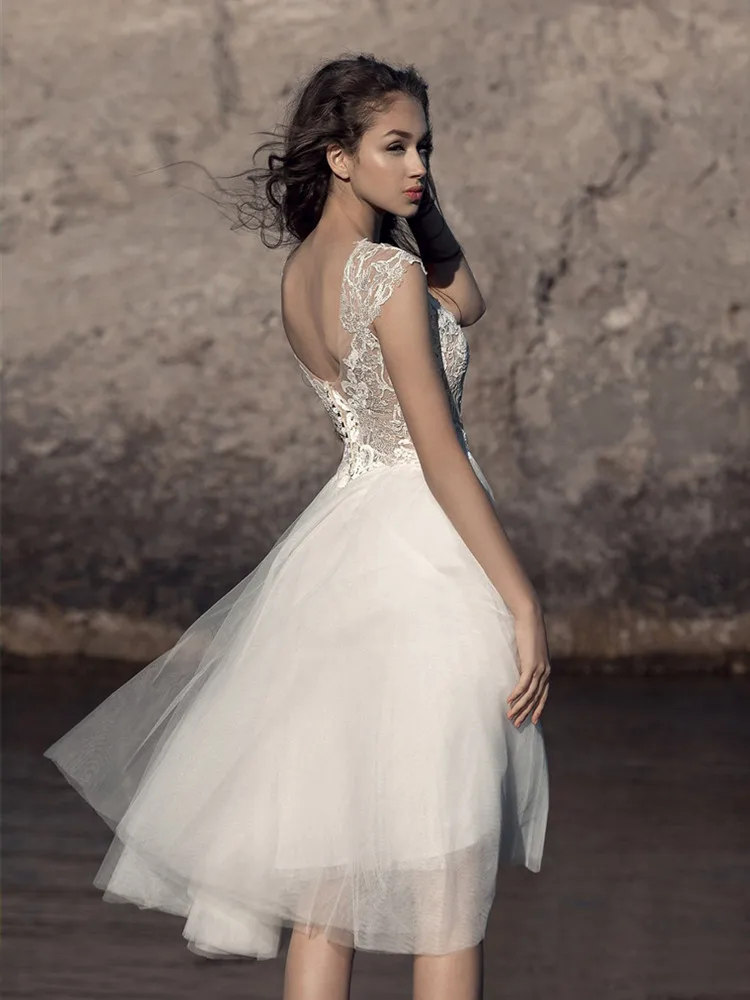2021 Элегантные короткие свадебные платья для невесты длиной до колена с V-образным вырезом и открытыми плечами