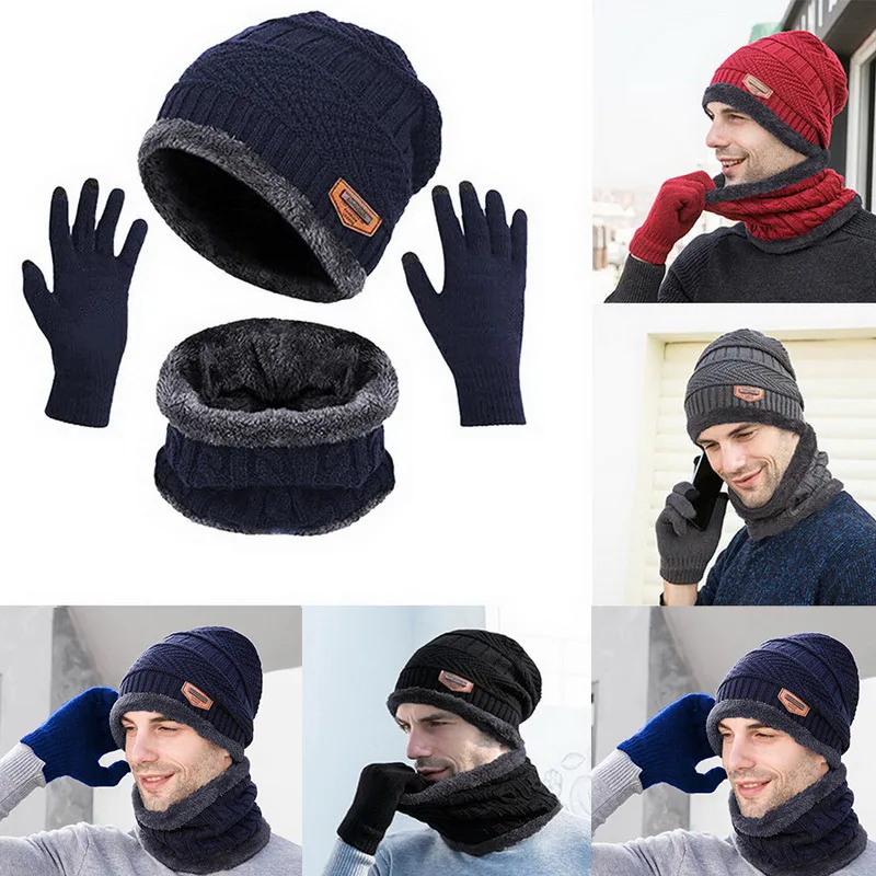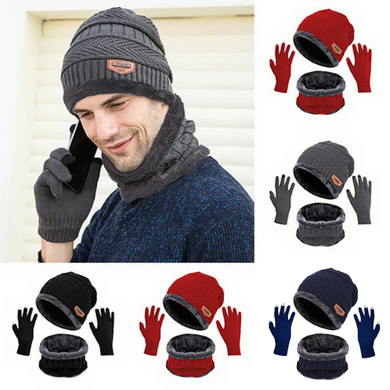 Модель 2021, Зимняя Шапка-бини для пар, шарф и перчатки, толстая пл...