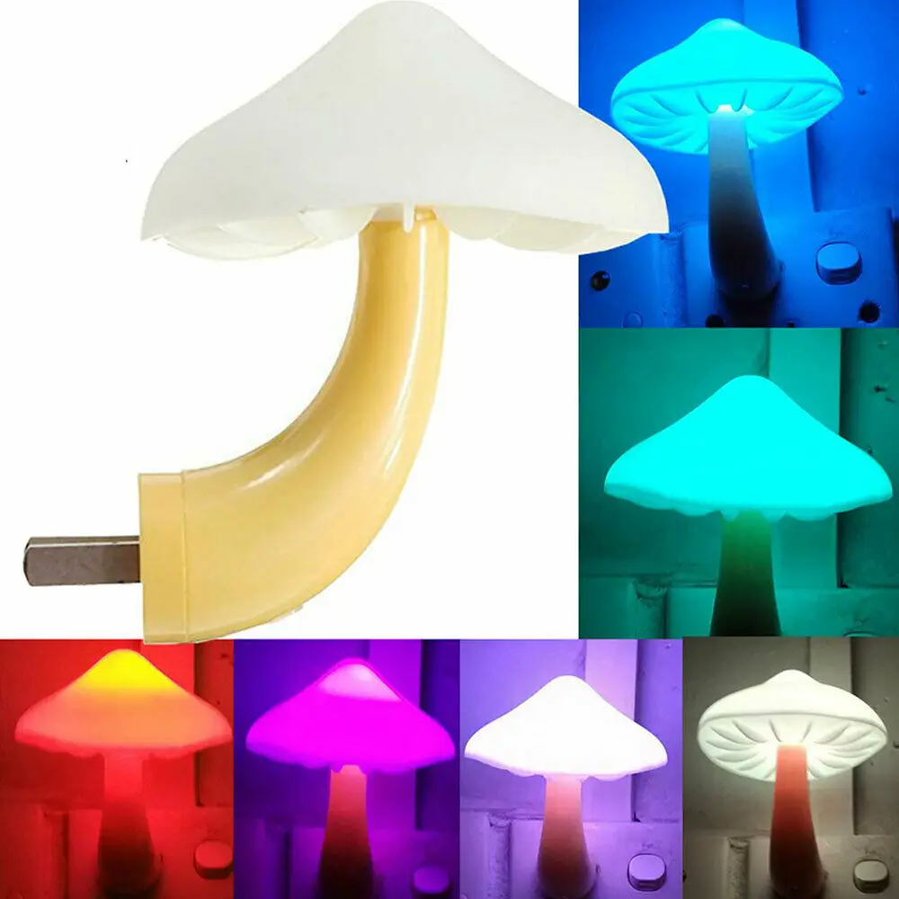Светодиодные ночники в форме грибов, автоматический сенсор, Настенный декор для спальни, прикроватная лампа, подарок для детей и девочек, вилка USEU