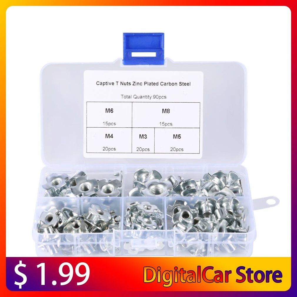 90 шт. M3 M4 M5 M6 M8 Т-образная гайка с четырьмя зубцами, резьба для деревянной вставки, четыре зубчатые гайки для мебели в ассортименте