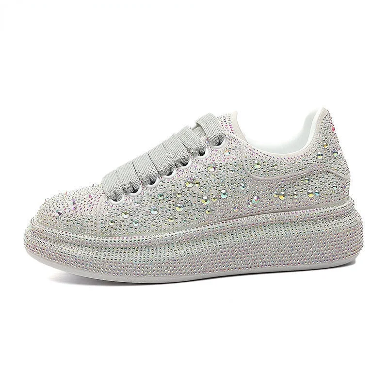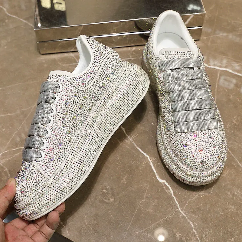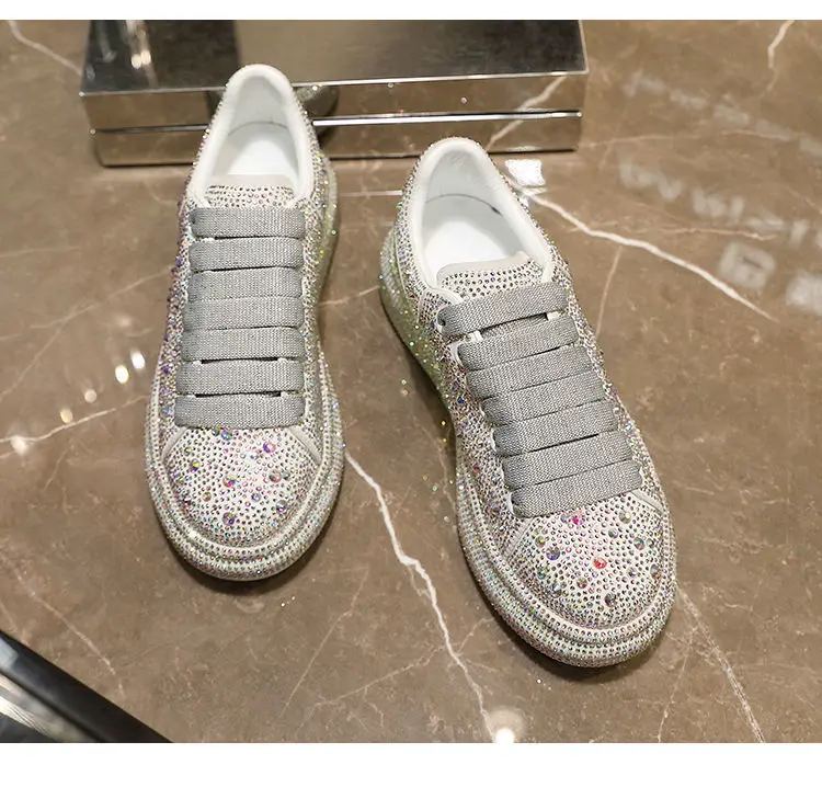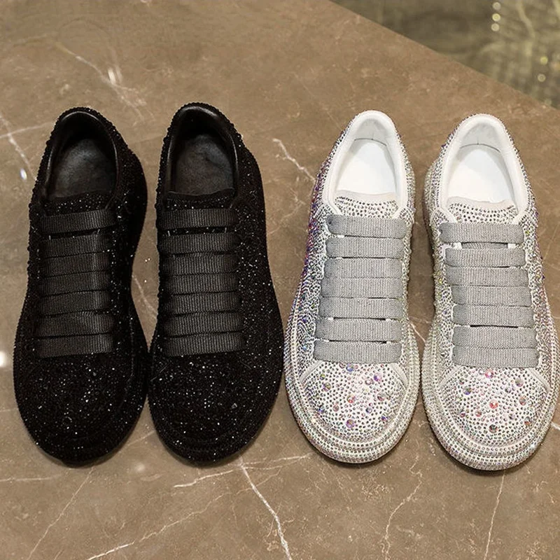 Женские кроссовки на платформе, полностью алмазные, спортивная обув...