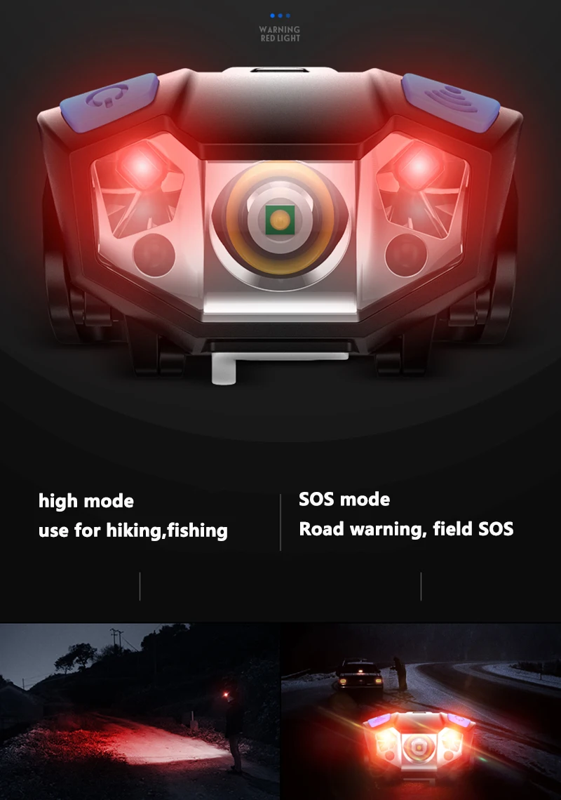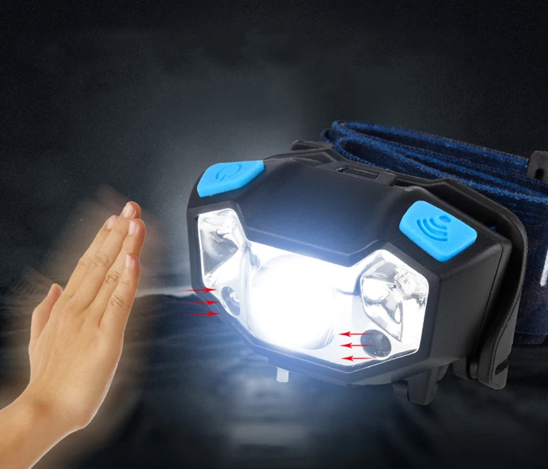 1.Индукционная фара, когда ваша рука находится рядом с фаройВ пределах 15 см, Фара включится, когда вы оставите налобный фонарь пальцем, он будет выключен.