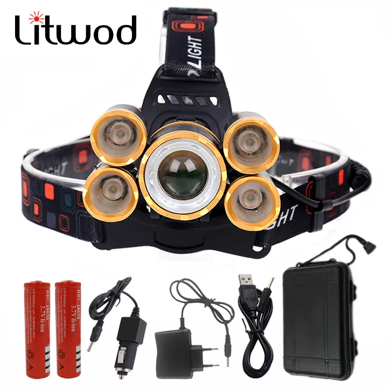 Налобный фонарь T6 с 5 светодиодный, уличный фонарь с аккумулятором 18650, зарядка от переменногопостоянного тока, лампа для рыбалки в Россию