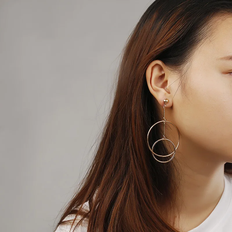 Женские длинные висячие серьги EN Big Metal, золотые серьги с больш...