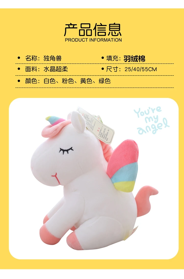 Плюшевые игрушки, единорог, лошадь с радужными крыльями, 25-55 см