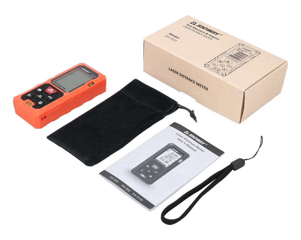 1 * Лазерный метр1 * Портативная сумка1 * ручной ремешок1 * Руководство пользователя1 * коробка1 * отражающая пластина
