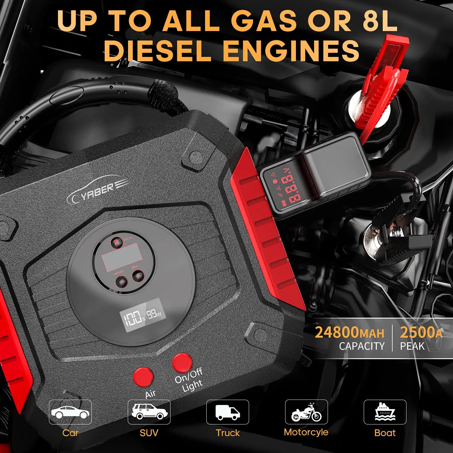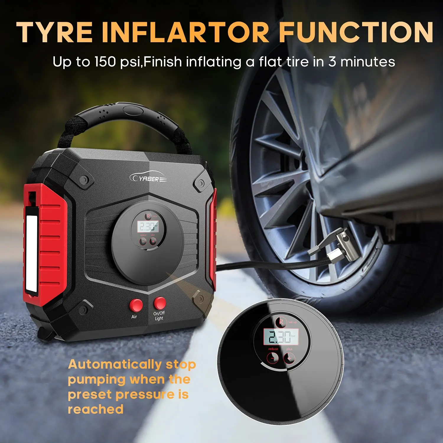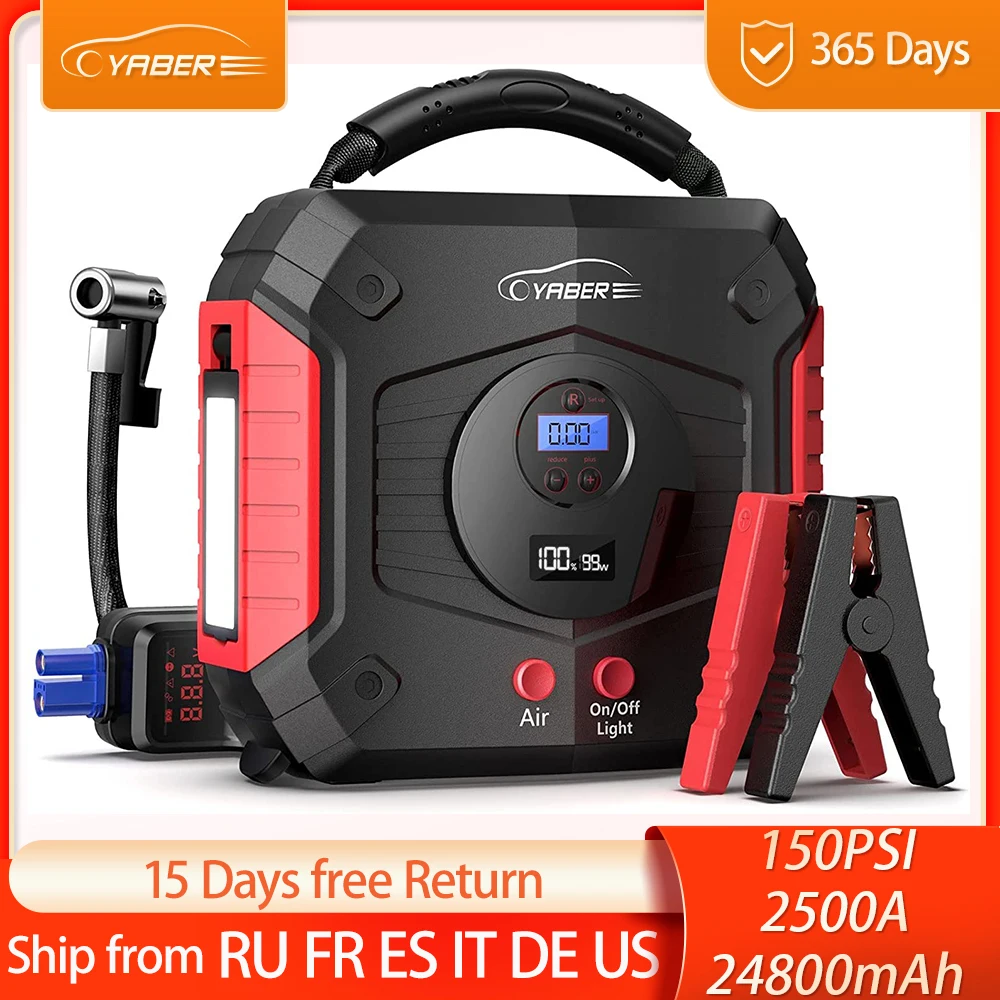 Автомобильный стартер YABER 4 в 1, пусковое устройство 24800 А, внешний аккумулятор мАч, усилитель аккумулятора psi, воздушный компрессор, насос для шин, пусковое устройство
