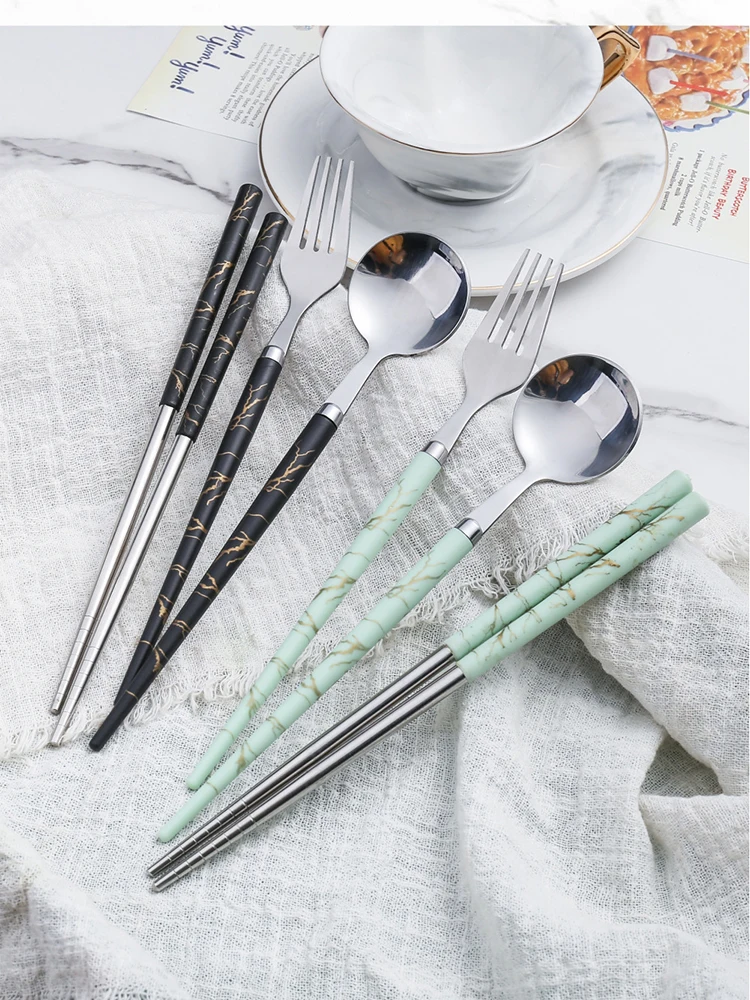 Набор мраморных столовых приборов, комплект минималистичных столовых приборов из нержавеющей стали, вилка, ложка, ложка, Рождественский и новогодний подарок, 1 комплект