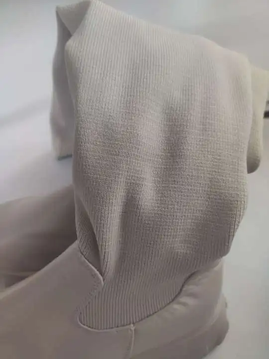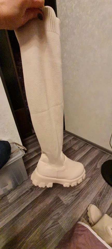 Доставка до Подмосковья больше месяца, отслеживалась, с продавцом не общалась. На 25,5 впритык, палец упирается, помяты, пахнут, смотрятся как галоши, на объем колена 47 см свободно. Если за 2 дня не приобретут форму открою Спор.