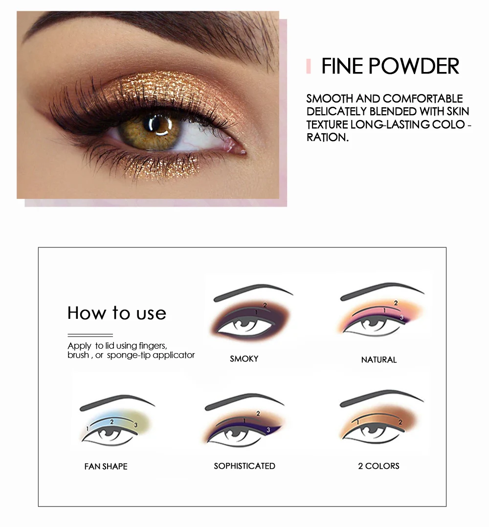 100% новый товар высокого качества.Высокая прочность, не легко выцветает.Легко удерживайте тонкий макияж.Цветовая гамма, многоцветная Опциональная цветовая гамма, подарит вам красоту, которую вы хотите.Подходит для профессионального или домашнего использования.