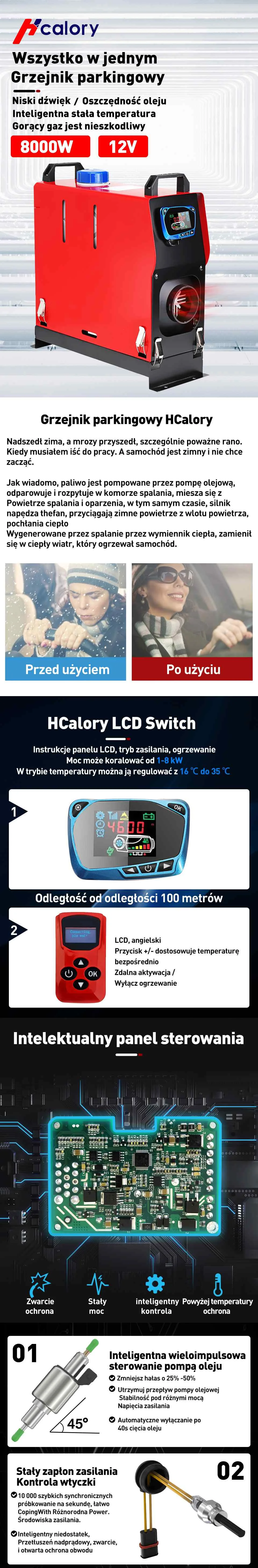 Посылка включает:1 хост воздушного нагревателя1 x ЖК-ключ1 пульт дистанционного управления2 х впускной трубы1 х выхлопная труба6 х соединительных труб для масла1 х масляный насос1 х воздушный фильтр1 х Кабель питания1 x Монтажные кронштейны1 ИнструкцияСпецификация:Материал: металл + пластикМощность: 1-8000 ВтНапряжение: 12 ВЦвет: красный + черныйРазмер: 42*41*15,5 смТопливо: ДизельПолный коэффициент сгорания: 100%Расход топлива: 0,1 литров/час маслоРабочая температура: -40 ℃ ~ 80 ℃Размер: 41*15,5*42 см/16,2*6,1*16,5"