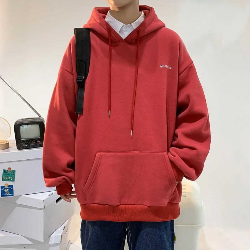 Мужская кофта с капюшоном, черная кофта большого размера с вышивкой и капюшоном, Свитшот в Корейском стиле Харадзюку, 7 цветов, 2021