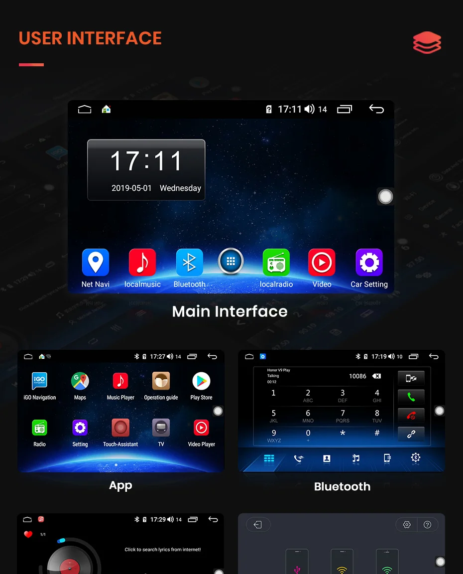 screen display9 inch 2.5D screen, 1024*600 resolution