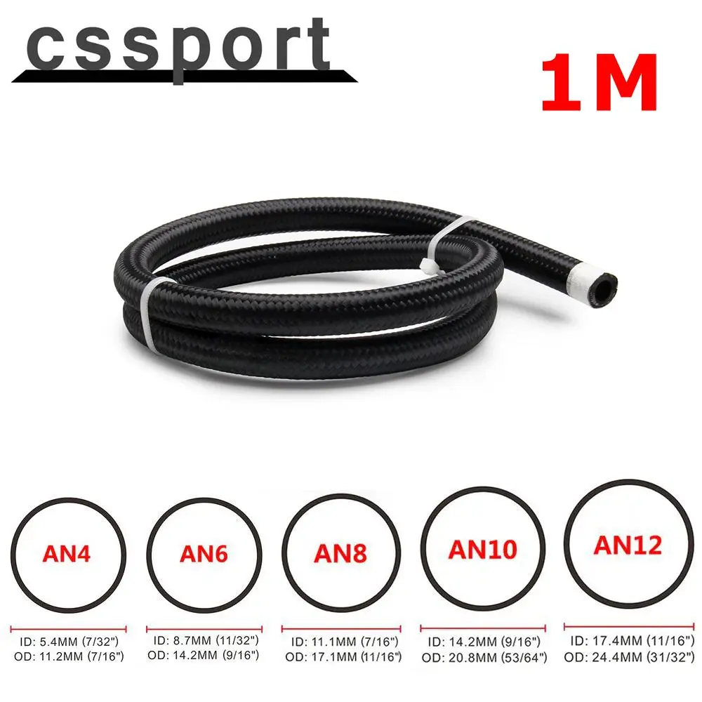 Универсальный 1 м AN4 AN6 AN10 AN12 гоночный шланг, нейлоновая топливная линия из нержавеющей стали, черный шланг для масляного охладителя, ручной шланг