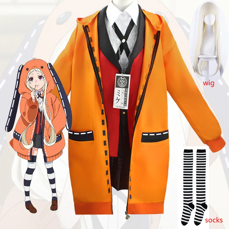 Женский костюм для косплея Yomotsuki Runa, парик из аниме Kakegurui Jabami Yumeko Yomozuki Runa, пальто с капюшоном, костюмы на Хэллоуин
