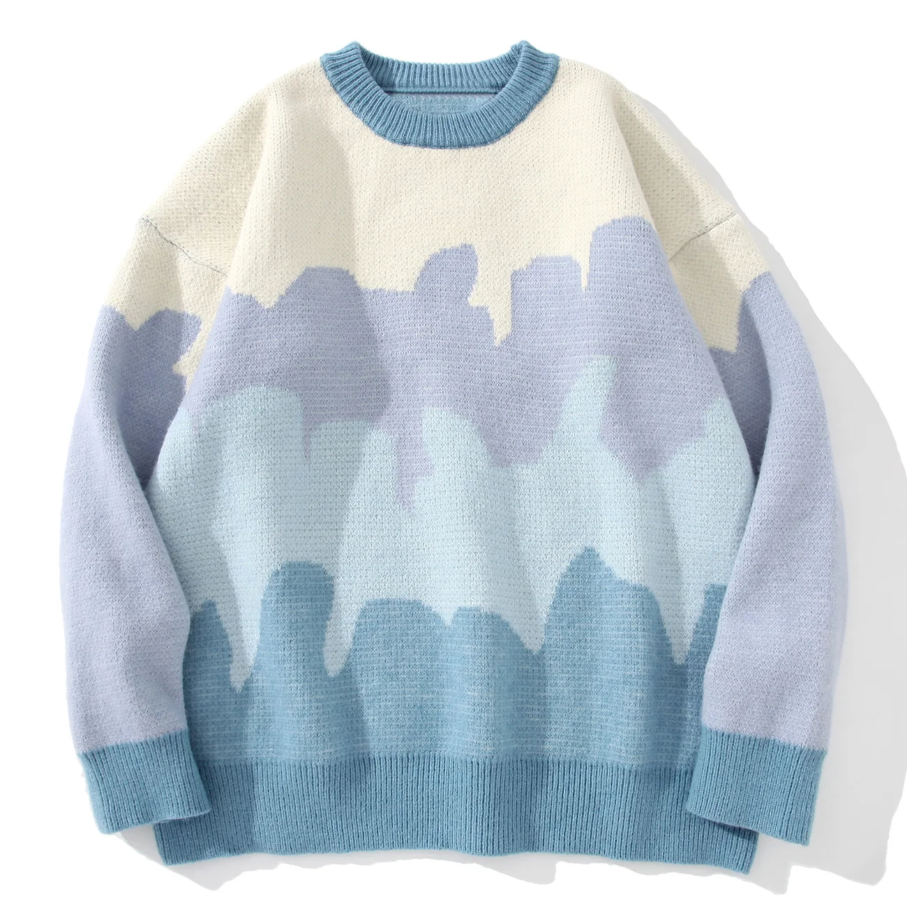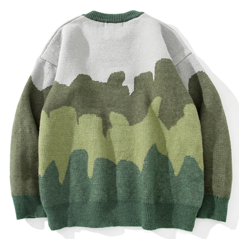 Свитер Харадзюку мужские пуловеры с градиентом, Полосатый жаккардовый вязаный свитер в стиле хип-хоп, ретро, камуфляжный принт, уличная одежда, свитшоты