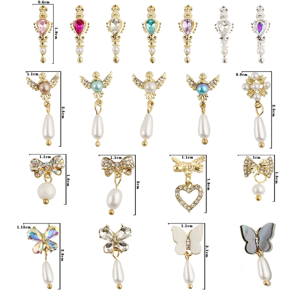 Подвеска в виде ангела для ногтей, 3D сердце, Бабочка, жемчужная подвеска, горный хрусталь, украшение для ногтей, УФ-гель, аксессуары для маникюра V3