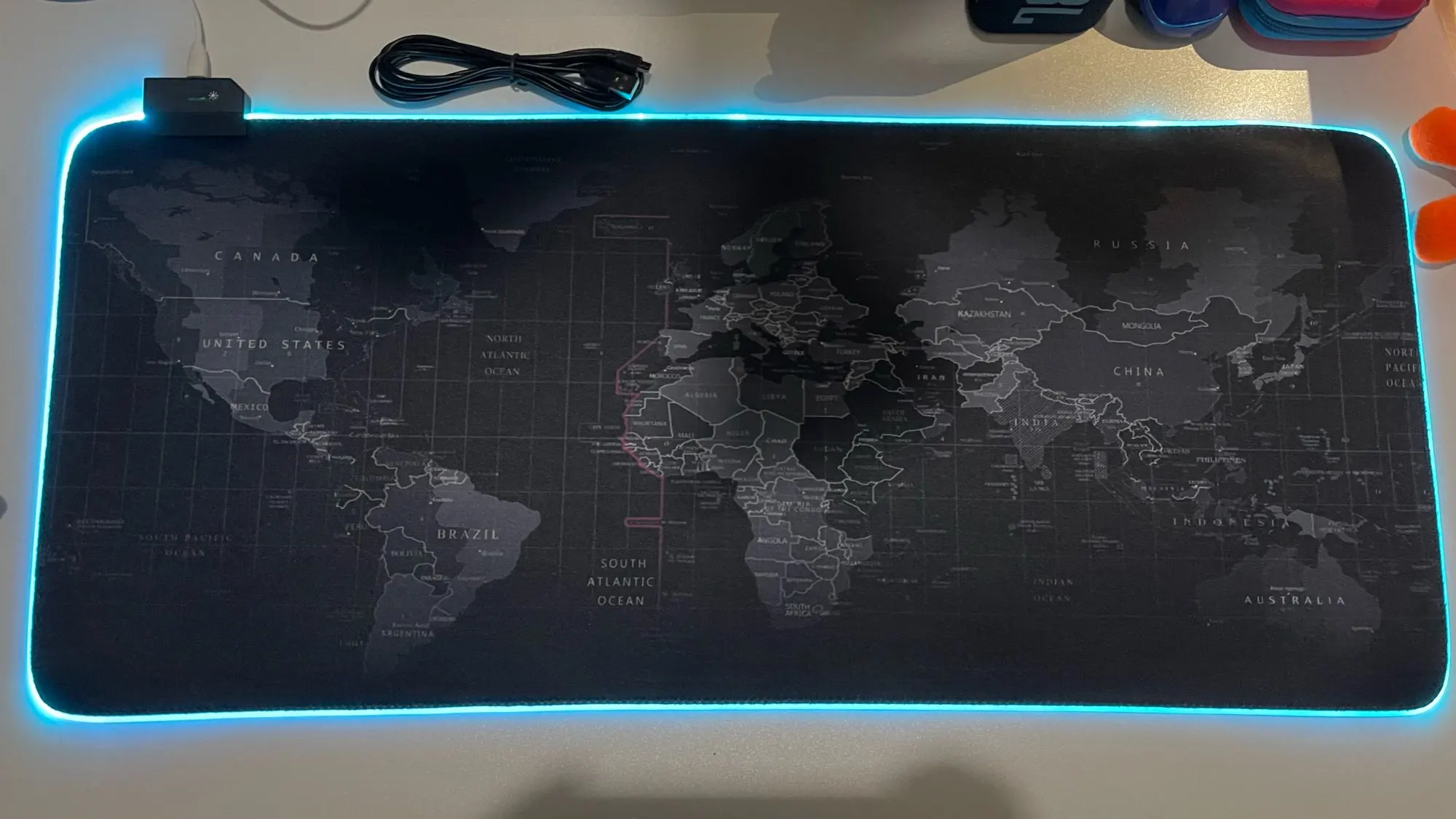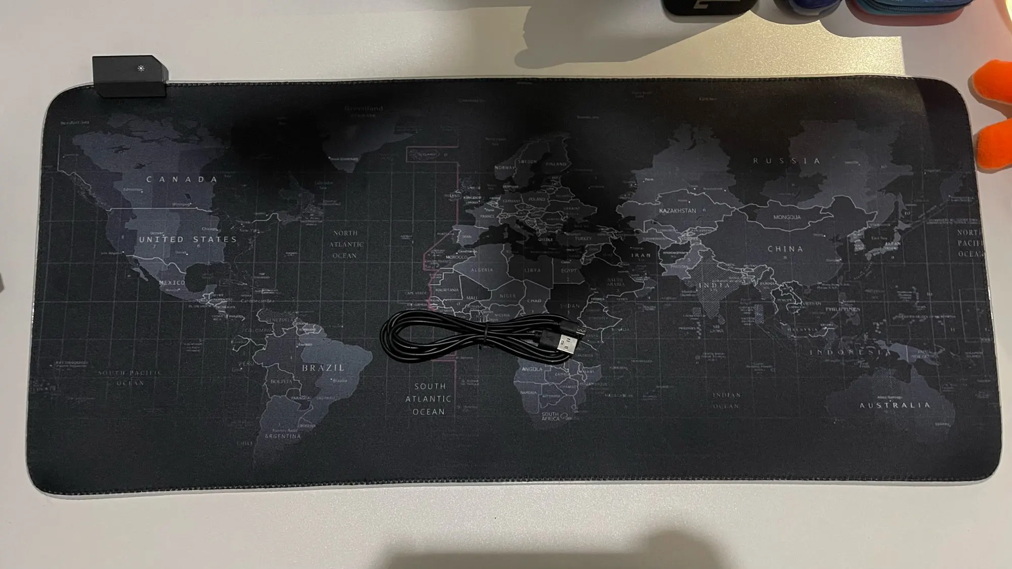 коврик хороший.пришел быстро. все режимы подсветки работают. хорошая яркость не слепит. небольшой запах резины пока есть. но думаю со временем пройдет. мышка скользит отлично. сам коврик за стол хорошо цепляет. ещё одна хорошая покупка для моей зоны отдых