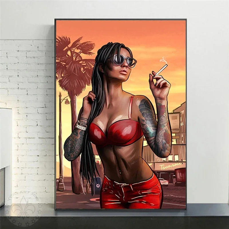 Картина на холсте с изображением сексуальной курительной девушки с татуировкой черная Обнаженная женщина плакат принты Скандинавская Настенная картина Декор для комнаты