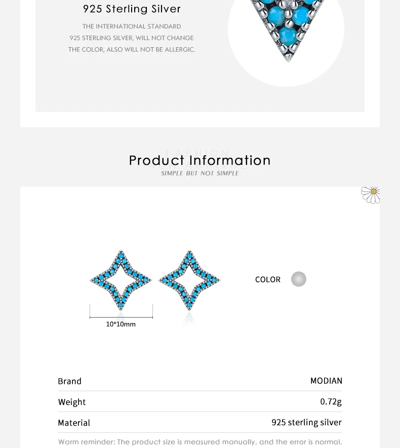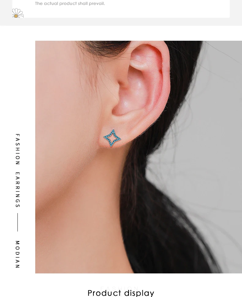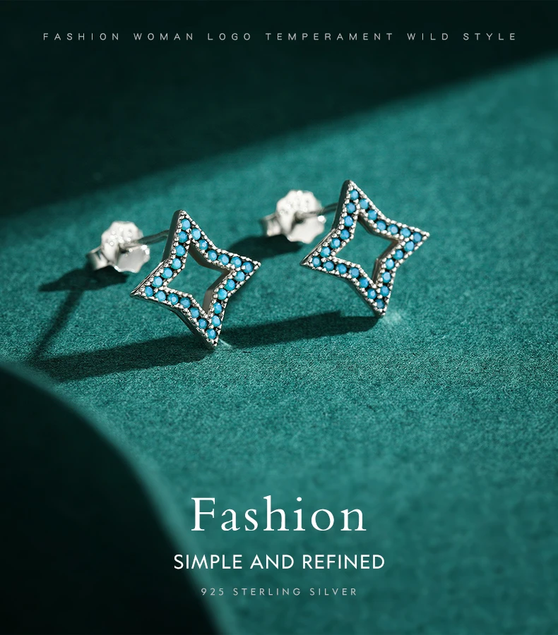 Серьги-гвоздики женские из серебра 925 пробы со звездами и бирюзой