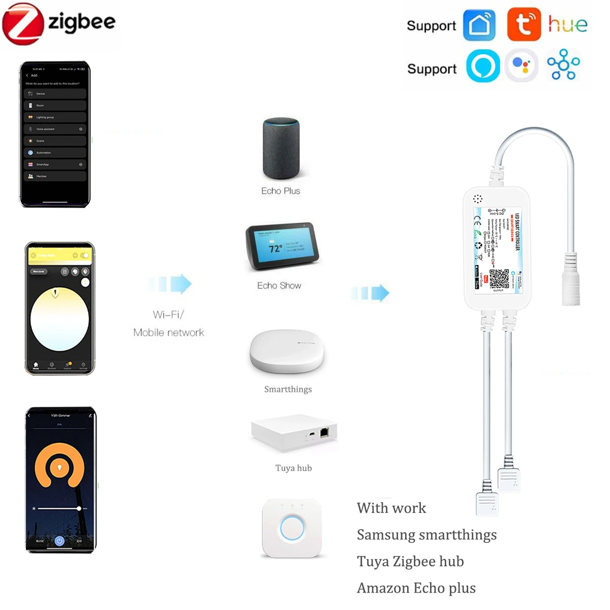 Умный светодиодный контроллер Zigbee 3,0 Tuya, Светодиодная лента 5050 3528 CCTRGBRGBWWRGBCCT, световой диммер Zigbee для умных вещей, Alexa