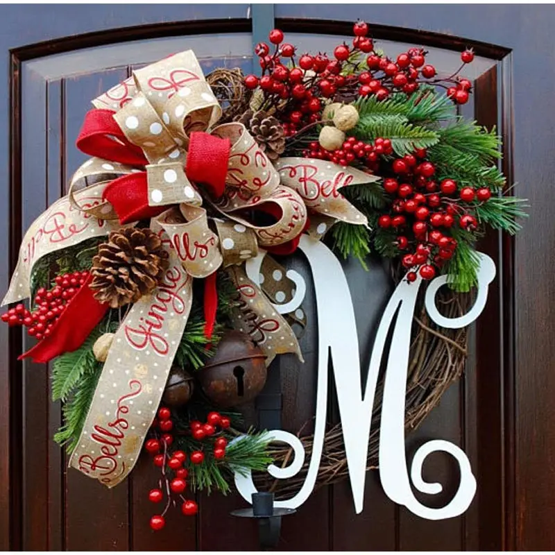 2022, Рождественский венок, искусственная красная фотография, подвесные украшения для входной двери, Настенный декор вечерние, венок на рождественскую елку