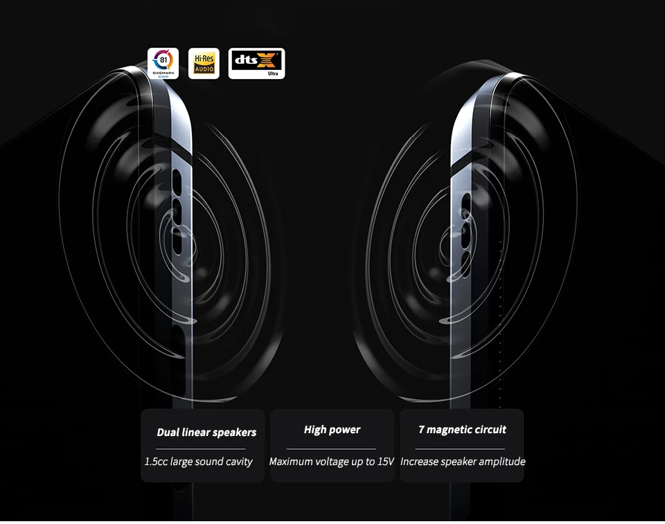 Стереодинамики в верхней и нижней части Black Shark 4 Pro лицевой стороной и обеспечивают одинаковый объем. Он прошел сертификацию технологии DTS Ultra X surroundSound, независимо от того, Играете ли вы в игры, вы также можете получить захватывающий стереозвук.